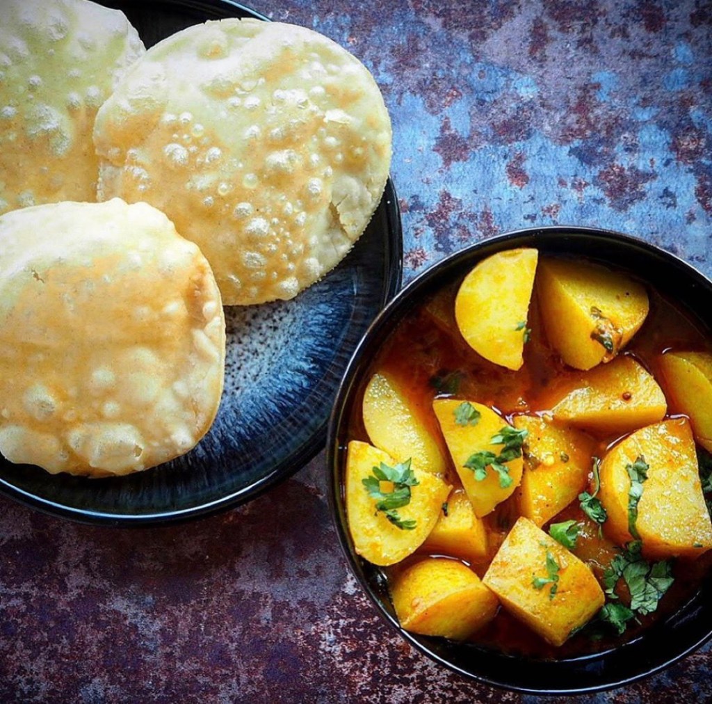 No one can beat my mum’s version of this. I try and imitate it, and it’s good, but not good enough, and even my English school friends used to come to my house just for this, and playing with my Lego set came second. The Gujarati potato curry is so simple and light, and best enjoyed in my opinion, with fluffy puri.